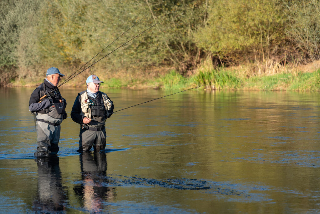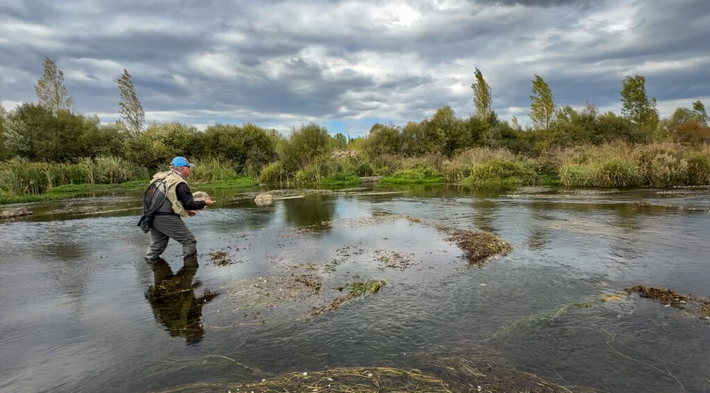 Our chosen water was a long, steady glide along the far bank. As I was there to document the trip as well as fish, I started by shadowing Peter and Diego, camera in hand. Immediately, one thing was clear: this was a healthy river system, alive in every sense. Weed beds swayed hypnotically in the cold, steady flow; aquatic invertebrates darted between the fronds; and schools of tiny baitfish shimmered just beneath the surface. This was no manicured chalkstream like those of southern England, this was a wild river, full of wild fish.