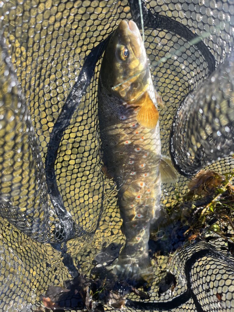 It wasn’t long before Peter was in. His rod arced gracefully, and moments later a stunning wild brown trout slipped into the net, a picture-perfect fish, and a promising start to our final day.