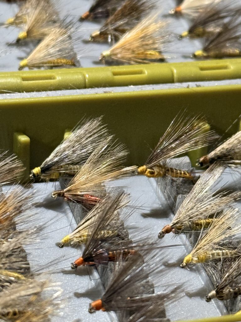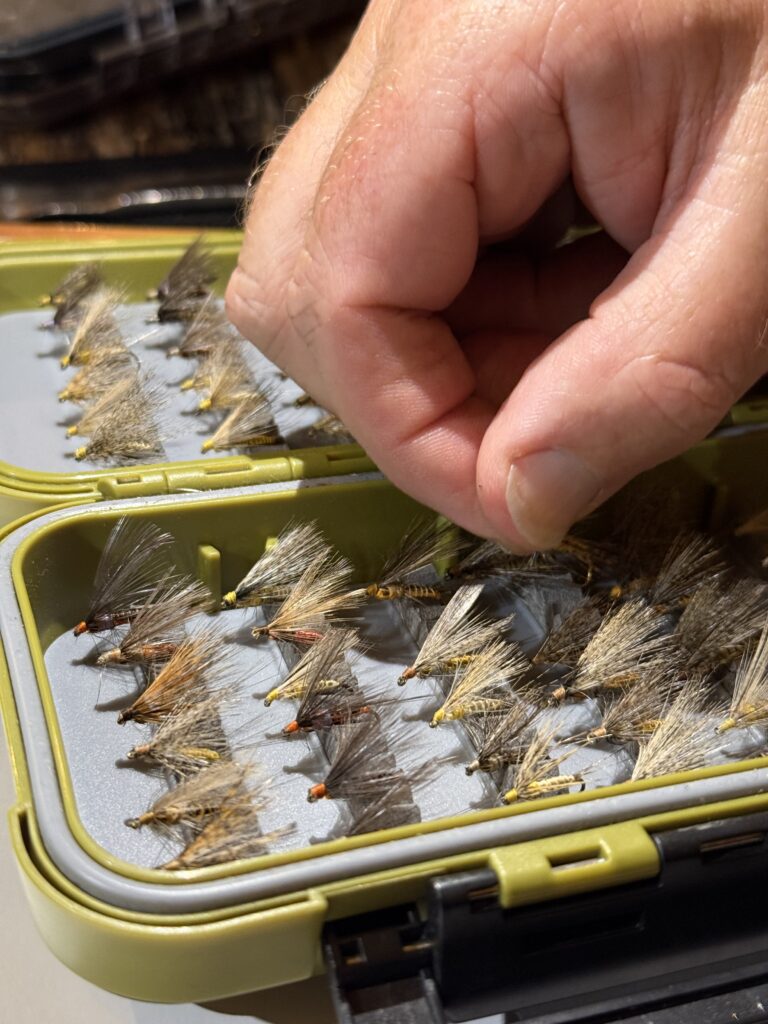Between bites, the conversation naturally turned to the day ahead: which stretches of river we’d explore, what tactics might work best, and of course, the flies. At that, Danny excused himself with a sly grin and disappeared into the back room. Moments later he returned, carrying three oversized binders, the kind a stamp collector might use to store their tiny treasures… but these weren’t filled with stamps.