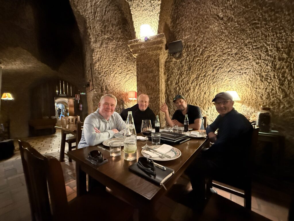 It turned out our destination was in one of these cuevas, though far grander than most: Cueva San Simón. From the outside, it was an unassuming place, but once we stepped through the humble door, we were met with an astonishing sight: a vast subterranean warren of interconnected rooms, passages, and stairways, all hewn from the earth. Waiters darted between tables, the flicker of candles dancing across rough earthen walls, and the air was thick with the smell of sizzling meat and wood smoke.