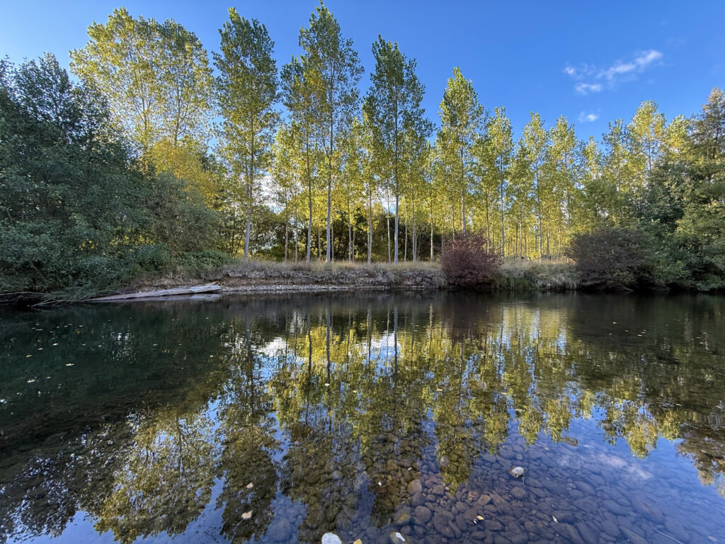 Shielded from the wind by the surrounding trees, the water lay calm and mirror-like, reflecting the riot of autumn colours that blazed from the banks. It felt like we’d stumbled upon a secret, a quiet pocket of serenity carved from the larger, wilder Esla.