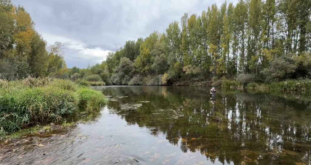 Our first beat on the Esla lay only about twenty minutes away, but Diego insisted we take the scenic route. We wound through a patchwork of sleepy rural villages and farmsteads, the countryside glowing in its autumn colours of gold, copper, and crimson. The air was crisp, clean, and charged with that unmistakable sense of promise that only a new fishing day can bring.