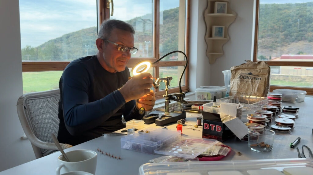 With some more help from Google Translate, we chatted about flies, materials, and techniques as the first light of dawn spilled through the windows. The smell of coffee mingled with the faint scent of dubbing wax, a strangely perfect combination. Before long, Diego appeared, signalling that it was time to roll.