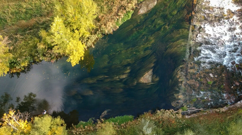 I tried to wade closer, but the pool deepened beyond the reach of my waders. Diego and Peter decided to give it a go. I stepped back, trading my rod for the drone, hopeful I could capture the impending hook-ups from above.
