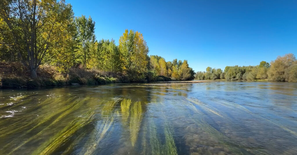 We packed up the gear, loaded into the SUVs, and set off once more. The afternoon beat lay not far from where we’d first glimpsed the river the evening before. Here, the Esla was peppered with small islands, creating a mosaic of water types: slow, glassy glides toward the far bank, and lively, riffled sections threading between us and the islands.
